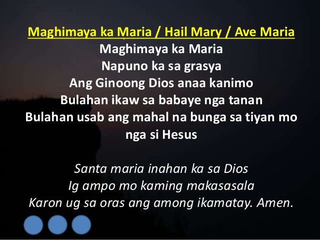 Say the Glory be. Contextual translation of paano ba matuto mag english. Ang Panginoon ay sumasaiyo.